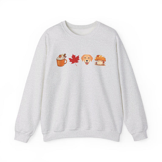 Latte, Fall leaf, Puppy & Mushrooms Fall Illustration Sweatshirt