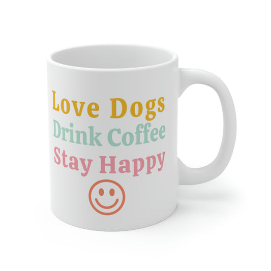 Love Dogs, Drink Coffee, Stay Happy Dog Coffee Mug, 11oz
